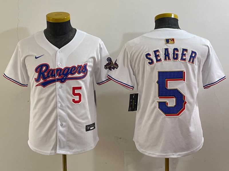 Youth Texas Rangers #5 Corey Seager Number White 2024 Gold Collection Limited Cool Base Jerseys