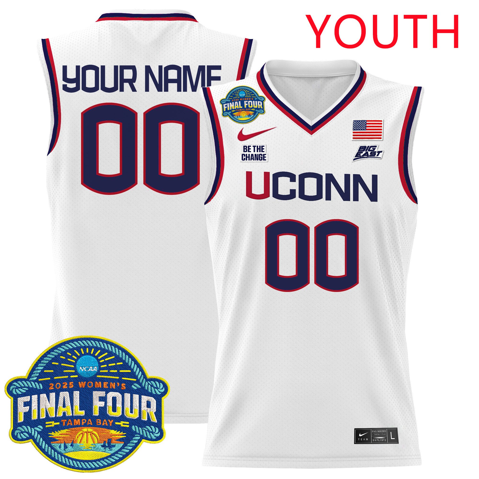 Youth UConn Huskies White Nike 2025 Big Eat Final Four Patch Lightweight Basketball Custom NCAA Jersey