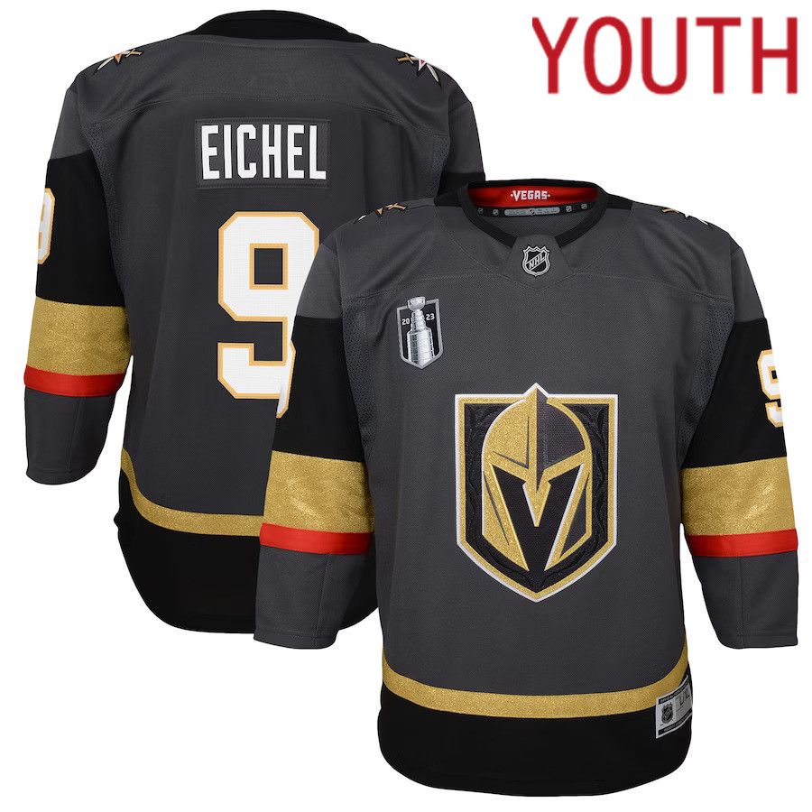 Youth Vegas Golden Knights #9 Jack Eichel Black 2023 Stanley Cup Final Alternate Premier Player NHL Jersey