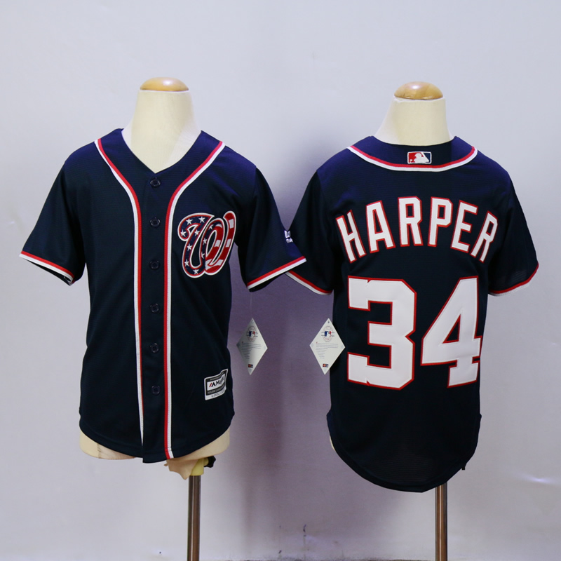 Youth Washington Nationals #34 Harper Blue MLB Jerseys
