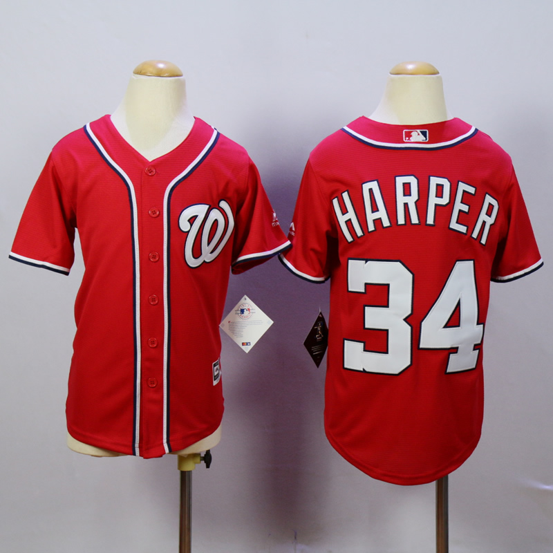 Youth Washington Nationals #34 Harper Red MLB Jerseys